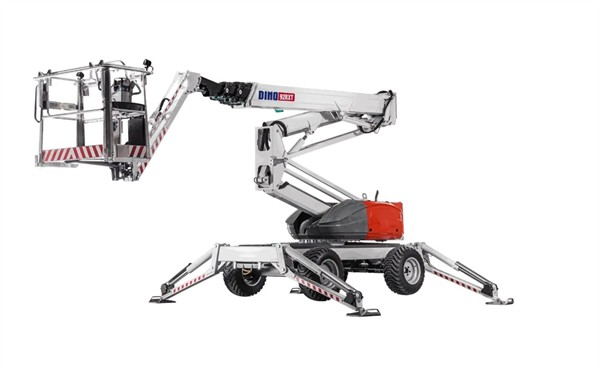 The DINO 92RXT is a high‑reach, rough‑terrain articulating boom lift engineered for demanding outdoor work where stability, outreach, and mobility are essential. Offering a 91 ft 10 in maximum working height and up to 52 ft of horizontal outreach, it delivers exceptional boom performance supported by a 5.2‑ft fly‑jib with 140° articulation for precise positioning around obstacles. Its lightweight design, oscillating front axle, and 4WD with multiple steering modes (2WS/4WS/Crab) provide excellent off‑road capability, while automatic leveling—up to 13.5°—ensures fast setup on uneven terrain. The lift supports up to 4 simultaneous boom movements, features an easy‑entry basket fully operable from the platform, and is powered by a strong, fuel‑efficient diesel engine for reliable, cost‑effective operation. Designed for productivity, transportability, and operator comfort, the 92RXT is a versatile solution for tree care, construction, utilities, and other elevated outdoor applications.